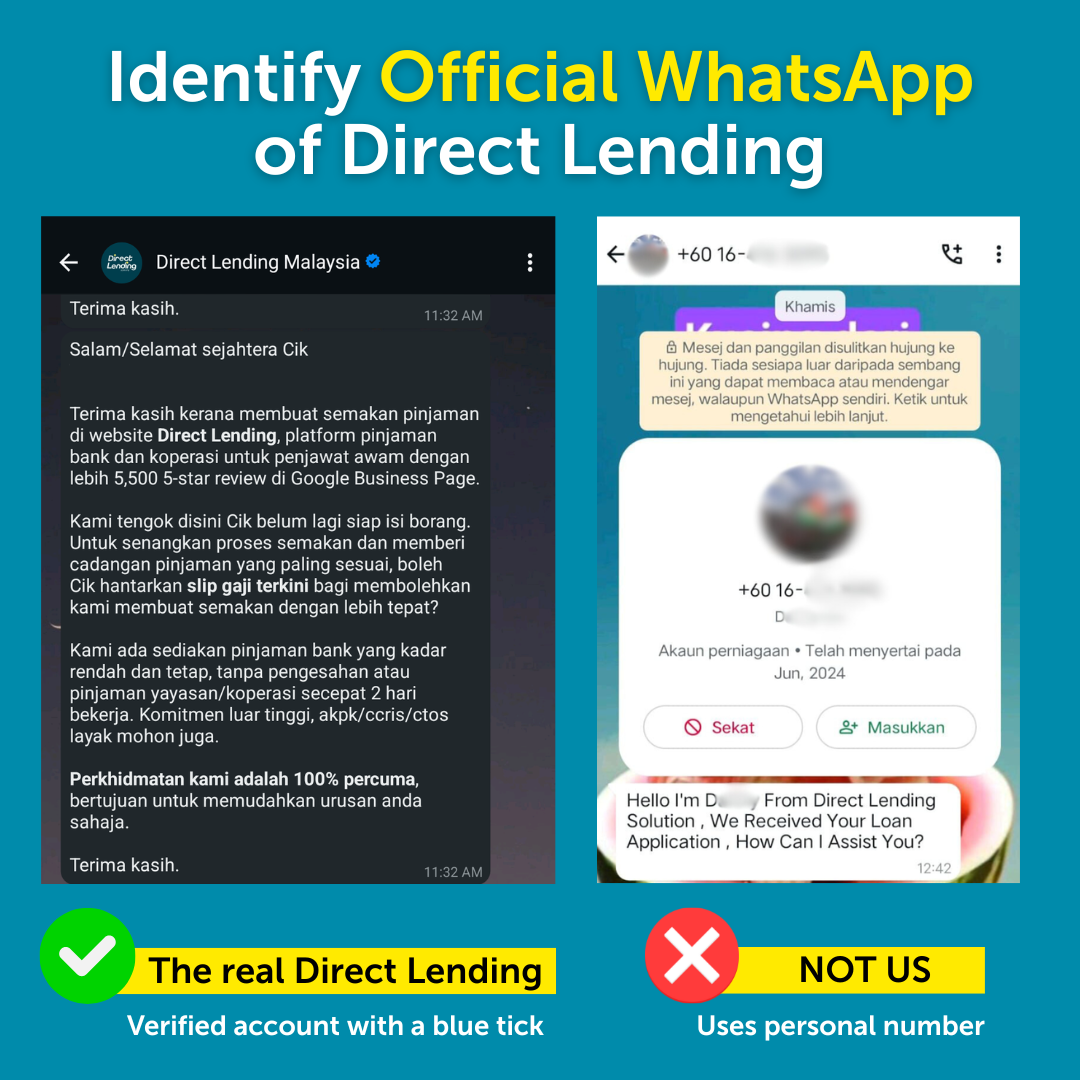 ✅ Our official WhatsApp account is Direct Lending Malaysia (verified with a blue tick)
